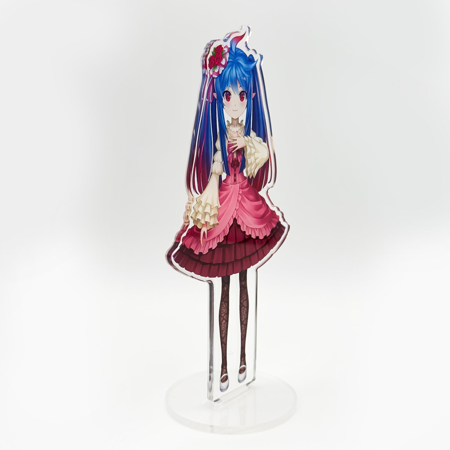 An acrylic standee of Leaflit, cosplaying as Furudo Erika. It features a cosplay dress and a twin-tail hairstyle.